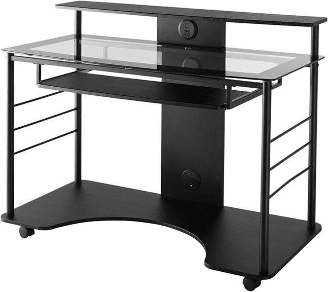Realspace 47"W Mobile Tech Desk Workstation, 36"H x 47"W x 26"D, Black | Like New | (See Condition Notes)