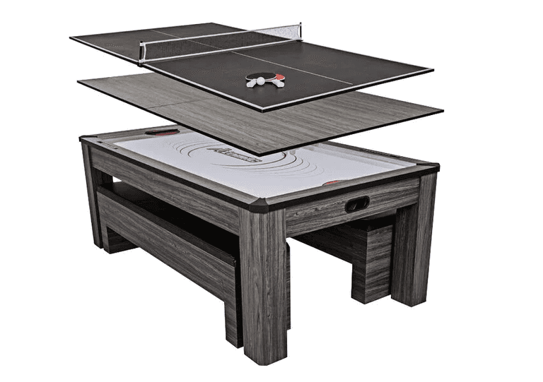 Atomic Northport 84" Gray Wood Conversion Top Air Hockey, Ping Pong, Dining Table Set w/ Benches & Accessories | Open Box