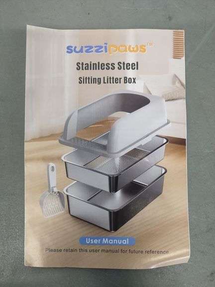 SUZZIPAWS Stainless Steel Cat Litter Box with Lid 19.6 x 13.7 x 12" | Open Box