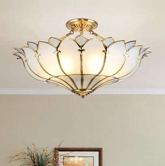 AEYEE, Petal Brass Semi-Flush Mounted Ceiling Light, 19.5"H, Gold Rim | Open Box