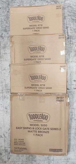 Toddleroo Safety Gate Bundle: 3 Supergate Ergo (Sand) And 1 Easy Swing & Lock (Bronze) | Open Box | (See Condition Notes)
