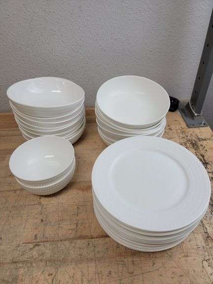 FGHJKK, White Dish Ware 3pc Set, (15) Large Bowls, (2) Small Bowls (16) Plates | Open Box | (See Condition Notes)
