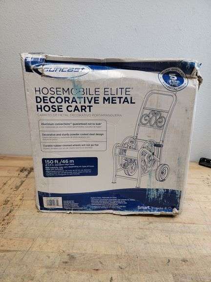 SUNCAST, House Mobile Decorative Metal Hose Cart, Good for 150' Hose, Wheels Included | Open Box | (See Condition Notes)