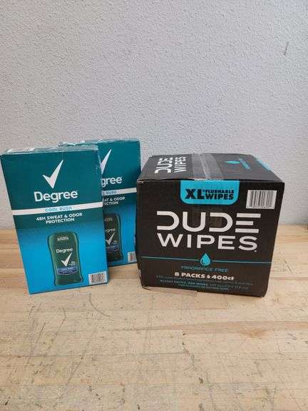 BUNDLE, Dude Wipes XL, 8pks In Box, Degree Cool Rush Deodorant, 3pk Per Box | Open Box | (See Condition Notes)
