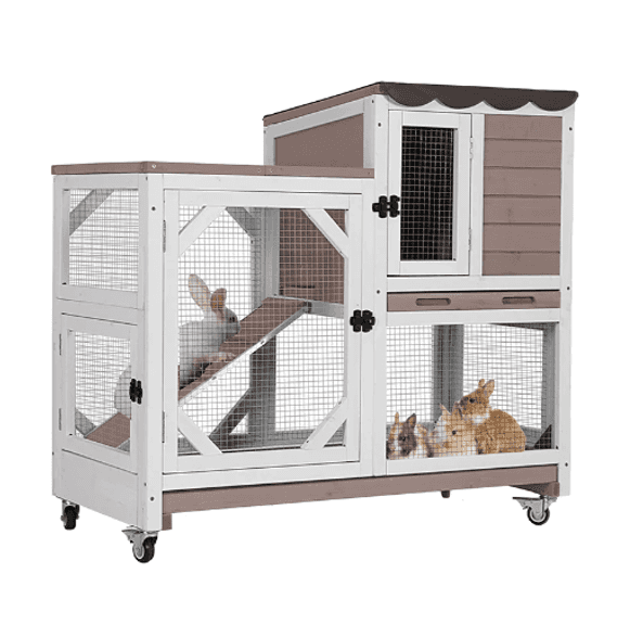 Aivituvin-AIR7013 Premium 2-Story Wooden Rabbit Hutch with Casters | Pull-Out Tray - Mocca | Open Box