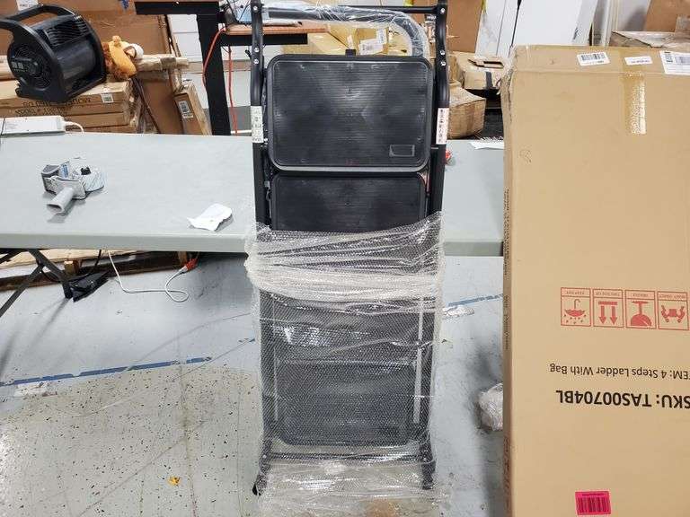 EdMaxwell 4 Step Ladder with Handrails 500 lb Capacity Category: Home Improvement & Tools Condition Disclaimer: Please read the title and review images carefully. Unless the title specifies otherwise, auction lots HAVE NOT been tested or inspected. If an items is new or tested, it will be noted in the title. If we are aware of any damage or defect, that will be listed in the title as well. If the title does not specify a condition then the item has NOT been tested. Items are being sold as-is. We do not accept returns unless the item is significantly not as described. Sales tax and a Buyer's Premium of 13% will be added to your final invoice. Clausulas: Por favor lea los titulos y revise las imagenes cuidadosamente. A menos de que el titulo especifique otra cosa. Los lotes de las subastas NO HAN SIDO PROBADOS NI TAMPOCO INSPECCIONADOS. Si un articulo esta nuevo o esta probado, se va a especificar en el titulo. Si nosotros tenemos el conocimiento de cualquier daño o defecto, tambien sera incluido en el titulo. Si en el titulo no se especifica la condicion en la que se encuentra dicho articulo, entonces significa que el articulo NO ha sido probado. Los articulos se venden tal y como vienen. Nosotros no aceptamos devoluciones a menos de que el articulo no sea el que se describe en el titulo. Se le añadira impuestos de venta (tax) y un cargo extra de comprador Premium del 13% a cargo en su factura final.