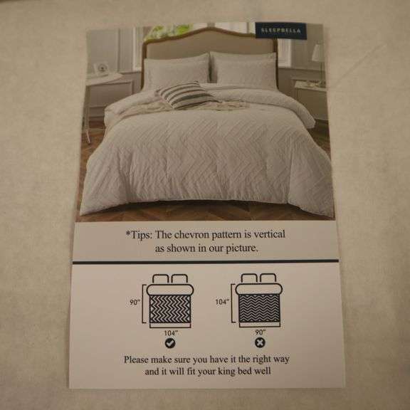 sleepBella Comforter Set, Queen 90"x90", 2 Pillows 20"x26", White Category: Home Decor & Home Goods Condition Disclaimer: Please read the title and review images carefully. Unless the title specifies otherwise, auction lots HAVE NOT been tested or inspected. If an items is new or tested, it will be noted in the title. If we are aware of any damage or defect, that will be listed in the title as well. If the title does not specify a condition then the item has NOT been tested. Items are being sold as-is. We do not accept returns unless the item is significantly not as described. Sales tax and a Buyer's Premium of 13% will be added to your final invoice. Clausulas: Por favor lea los titulos y revise las imagenes cuidadosamente. A menos de que el titulo especifique otra cosa. Los lotes de las subastas NO HAN SIDO PROBADOS NI TAMPOCO INSPECCIONADOS. Si un articulo esta nuevo o esta probado, se va a especificar en el titulo. Si nosotros tenemos el conocimiento de cualquier daño o defecto, tambien sera incluido en el titulo. Si en el titulo no se especifica la condicion en la que se encuentra dicho articulo, entonces significa que el articulo NO ha sido probado. Los articulos se venden tal y como vienen. Nosotros no aceptamos devoluciones a menos de que el articulo no sea el que se describe en el titulo. Se le añadira impuestos de venta (tax) y un cargo extra de comprador Premium del 13% a cargo en su factura final.