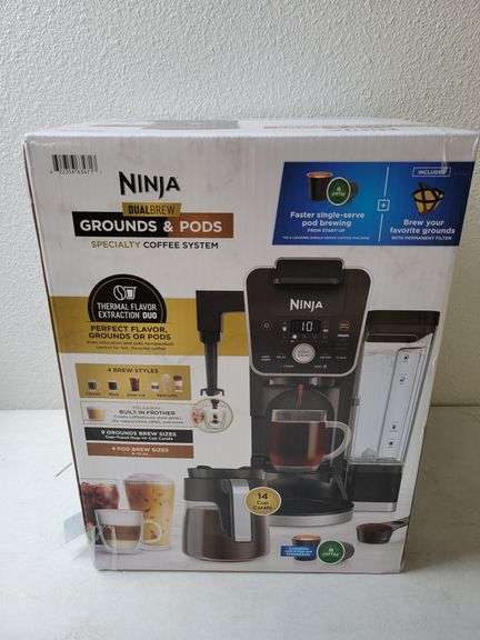 Ninja DualBrew Grounds and Pods Coffee System, New Category: Kitchen Goods & Appliances Condition Disclaimer: Please read the title and review images carefully. Unless the title specifies otherwise, auction lots HAVE NOT been tested or inspected. If an items is new or tested, it will be noted in the title. If we are aware of any damage or defect, that will be listed in the title as well. If the title does not specify a condition then the item has NOT been tested. Items are being sold as-is. We do not accept returns unless the item is significantly not as described. Sales tax and a Buyer's Premium of 13% will be added to your final invoice. Clausulas: Por favor lea los titulos y revise las imagenes cuidadosamente. A menos de que el titulo especifique otra cosa. Los lotes de las subastas NO HAN SIDO PROBADOS NI TAMPOCO INSPECCIONADOS. Si un articulo esta nuevo o esta probado, se va a especificar en el titulo. Si nosotros tenemos el conocimiento de cualquier daño o defecto, tambien sera incluido en el titulo. Si en el titulo no se especifica la condicion en la que se encuentra dicho articulo, entonces significa que el articulo NO ha sido probado. Los articulos se venden tal y como vienen. Nosotros no aceptamos devoluciones a menos de que el articulo no sea el que se describe en el titulo. Se le añadira impuestos de venta (tax) y un cargo extra de comprador Premium del 13% a cargo en su factura final.