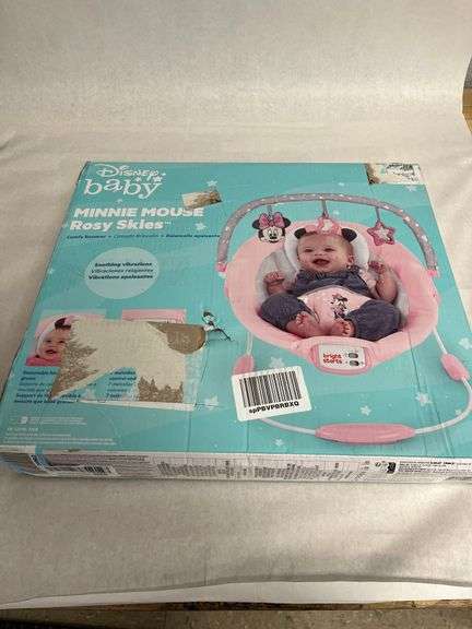 Minnie Mouse Rosy Skies Baby Bouncer Category: Baby Products Condition Disclaimer: Please read the title and review images carefully. Unless the title specifies otherwise, auction lots HAVE NOT been tested or inspected. If an items is new or tested, it will be noted in the title. If we are aware of any damage or defect, that will be listed in the title as well. If the title does not specify a condition then the item has NOT been tested. Items are being sold as-is. We do not accept returns unless the item is significantly not as described. Sales tax and a Buyer's Premium of 13% will be added to your final invoice. Clausulas: Por favor lea los titulos y revise las imagenes cuidadosamente. A menos de que el titulo especifique otra cosa. Los lotes de las subastas NO HAN SIDO PROBADOS NI TAMPOCO INSPECCIONADOS. Si un articulo esta nuevo o esta probado, se va a especificar en el titulo. Si nosotros tenemos el conocimiento de cualquier daño o defecto, tambien sera incluido en el titulo. Si en el titulo no se especifica la condicion en la que se encuentra dicho articulo, entonces significa que el articulo NO ha sido probado. Los articulos se venden tal y como vienen. Nosotros no aceptamos devoluciones a menos de que el articulo no sea el que se describe en el titulo. Se le añadira impuestos de venta (tax) y un cargo extra de comprador Premium del 13% a cargo en su factura final.