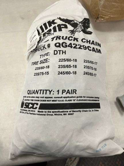 Light Truck Chain Category: Condition Disclaimer: Please read the title and review images carefully. Unless the title specifies otherwise, auction lots HAVE NOT been tested or inspected. If an items is new or tested, it will be noted in the title. If we are aware of any damage or defect, that will be listed in the title as well. If the title does not specify a condition then the item has NOT been tested. Items are being sold as-is. We do not accept returns unless the item is significantly not as described. Sales tax and a Buyer's Premium of 13% will be added to your final invoice. Clausulas: Por favor lea los titulos y revise las imagenes cuidadosamente. A menos de que el titulo especifique otra cosa. Los lotes de las subastas NO HAN SIDO PROBADOS NI TAMPOCO INSPECCIONADOS. Si un articulo esta nuevo o esta probado, se va a especificar en el titulo. Si nosotros tenemos el conocimiento de cualquier daño o defecto, tambien sera incluido en el titulo. Si en el titulo no se especifica la condicion en la que se encuentra dicho articulo, entonces significa que el articulo NO ha sido probado. Los articulos se venden tal y como vienen. Nosotros no aceptamos devoluciones a menos de que el articulo no sea el que se describe en el titulo. Se le añadira impuestos de venta (tax) y un cargo extra de comprador Premium del 13% a cargo en su factura final.