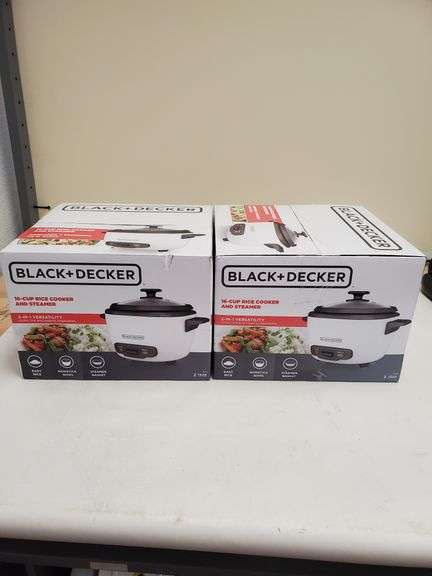 Black + Decker 16cup Rice Cooker & Steamer Set Black + Decker 16cup Rice Cooker & Steamer Set Condition Disclaimer: Please read the title and review images carefully. Unless the title specifies otherwise, auction lots HAVE NOT been tested or inspected. If an items is new or tested, it will be noted in the title. If we are aware of any damage or defect, that will be listed in the title as well. If the title does not specifiy a condition then the item has NOT been tested. Items are being sold as-is. We do not accept returns unless the item is significantly not as decribed. Sales tax and a Buyer's Premium of 13% will be added to your final invoice. Clausulas: Por favor lea los titulos y revise las imagenes cuidadosamente. A menos de que el titulo especifique otra cosa. Los lotes de las subastas NO HAN SIDO PROBADOS NI TAMPOCO INSPECCIONADOS. Si un articulo esta nuevo o esta probado, se va a especificar en el titulo. Si nosotros tenemos el conocimiento de cualquier daño o defecto, tambien sera incluido en el titulo. Si en el titulo no se especifica la condicion en la que se encuentra dicho articulo, entonces significa que el articulo NO ha sido probado. Los articulos se venden tal y como vienen. Nosotros no aceptamos devoluciones a menos de que el articulo no sea el que se describe en el titulo. Se le añadira impuestos de venta (tax) y un cargo extra de comprador Premium del 13% a cargo en su factura final.