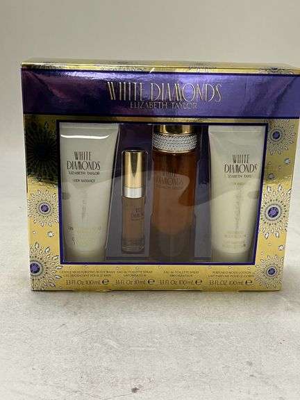 Elizabeth Taylor White Diamonds Set, New/Sealed Elizabeth Taylor White Diamonds Set Condition Disclaimer: Please read the title and review images carefully. Unless the title specifies otherwise, auction lots HAVE NOT been tested or inspected. If an items is new or tested, it will be noted in the title. If we are aware of any damage or defect, that will be listed in the title as well. If the title does not specifiy a condition then the item has NOT been tested. Items are being sold as-is. We do not accept returns unless the item is significantly not as decribed. Sales tax and a Buyer's Premium of 13% will be added to your final invoice. Clausulas: Por favor lea los titulos y revise las imagenes cuidadosamente. A menos de que el titulo especifique otra cosa. Los lotes de las subastas NO HAN SIDO PROBADOS NI TAMPOCO INSPECCIONADOS. Si un articulo esta nuevo o esta probado, se va a especificar en el titulo. Si nosotros tenemos el conocimiento de cualquier daño o defecto, tambien sera incluido en el titulo. Si en el titulo no se especifica la condicion en la que se encuentra dicho articulo, entonces significa que el articulo NO ha sido probado. Los articulos se venden tal y como vienen. Nosotros no aceptamos devoluciones a menos de que el articulo no sea el que se describe en el titulo. Se le añadira impuestos de venta (tax) y un cargo extra de comprador Premium del 13% a cargo en su factura final.