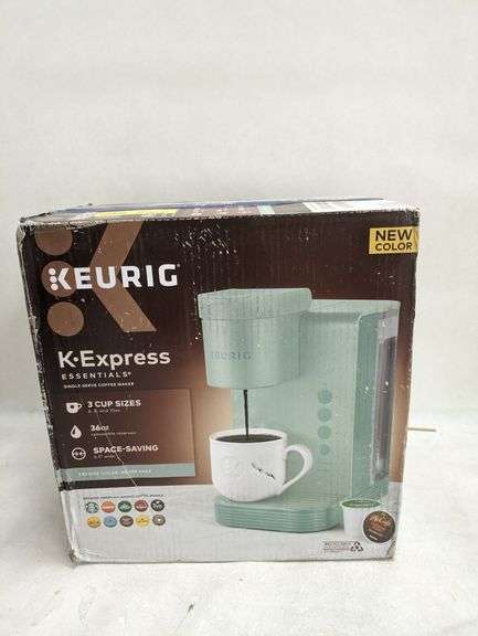 Keurig K-Express Essentials Single Serve Coffee Maker, New/Sealed Keurig K-Express Essentials Single Serve Coffee Maker Condition Disclaimer: Please read the title and review images carefully. Unless the title specifies otherwise, auction lots HAVE NOT been tested or inspected. If an items is new or tested, it will be noted in the title. If we are aware of any damage or defect, that will be listed in the title as well. If the title does not specifiy a condition then the item has NOT been tested. Items are being sold as-is. We do not accept returns unless the item is significantly not as decribed. Sales tax and a Buyer's Premium of 13% will be added to your final invoice. Clausulas: Por favor lea los titulos y revise las imagenes cuidadosamente. A menos de que el titulo especifique otra cosa. Los lotes de las subastas NO HAN SIDO PROBADOS NI TAMPOCO INSPECCIONADOS. Si un articulo esta nuevo o esta probado, se va a especificar en el titulo. Si nosotros tenemos el conocimiento de cualquier daño o defecto, tambien sera incluido en el titulo. Si en el titulo no se especifica la condicion en la que se encuentra dicho articulo, entonces significa que el articulo NO ha sido probado. Los articulos se venden tal y como vienen. Nosotros no aceptamos devoluciones a menos de que el articulo no sea el que se describe en el titulo. Se le añadira impuestos de venta (tax) y un cargo extra de comprador Premium del 13% a cargo en su factura final., ___________________________________________________________________ ___________________________________________________________________