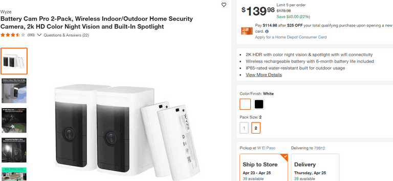 WYZE Battery Cam Pro 2-Pack , Visually Good Condition
